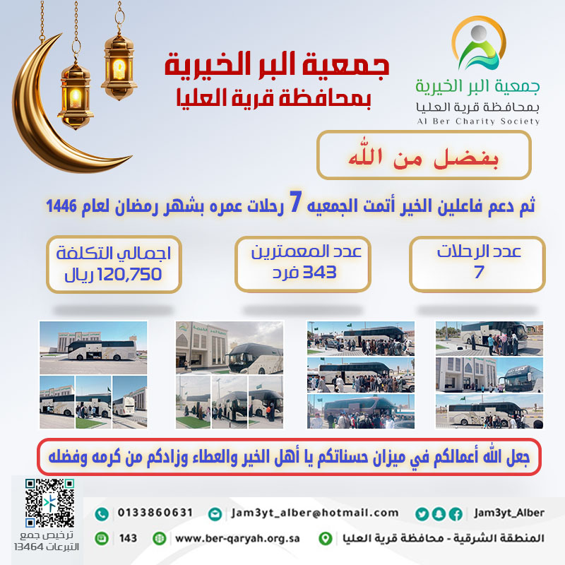 من منطلق التيسير على عباد لله بادرت جمعية البر بقرية العليا بمشروع ترميم المنازل وهو مبادرة تهدف إلى تحسين ظروف السكن للعائلات المحتاجة، وخصوصاً من يعيش منهم بمسكن متهالك، وكان المشروع أساسه الترميم والتحسين، ويهدف لتحسين جودة الحياة للأسر المستفيدة.