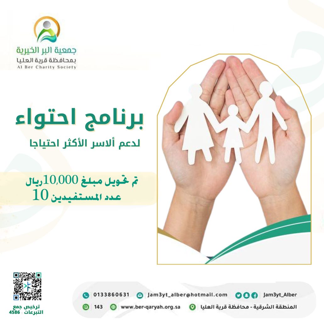 من هذا الفضل اندفعت جمعية البر الخيرية بمحافظة قرية العليا لمشروع بناء المساكن، وهو مبادرة إنسانية تهدف إلى توفير مأوى آمن للأطفال الأيتام الذين فقدوا أحد الوالدين أو كلاهما، ويهدف المشروع إلى تحسين جودة حياتهم، وتأمين بيئة تساعدهم على النمو والتطور.